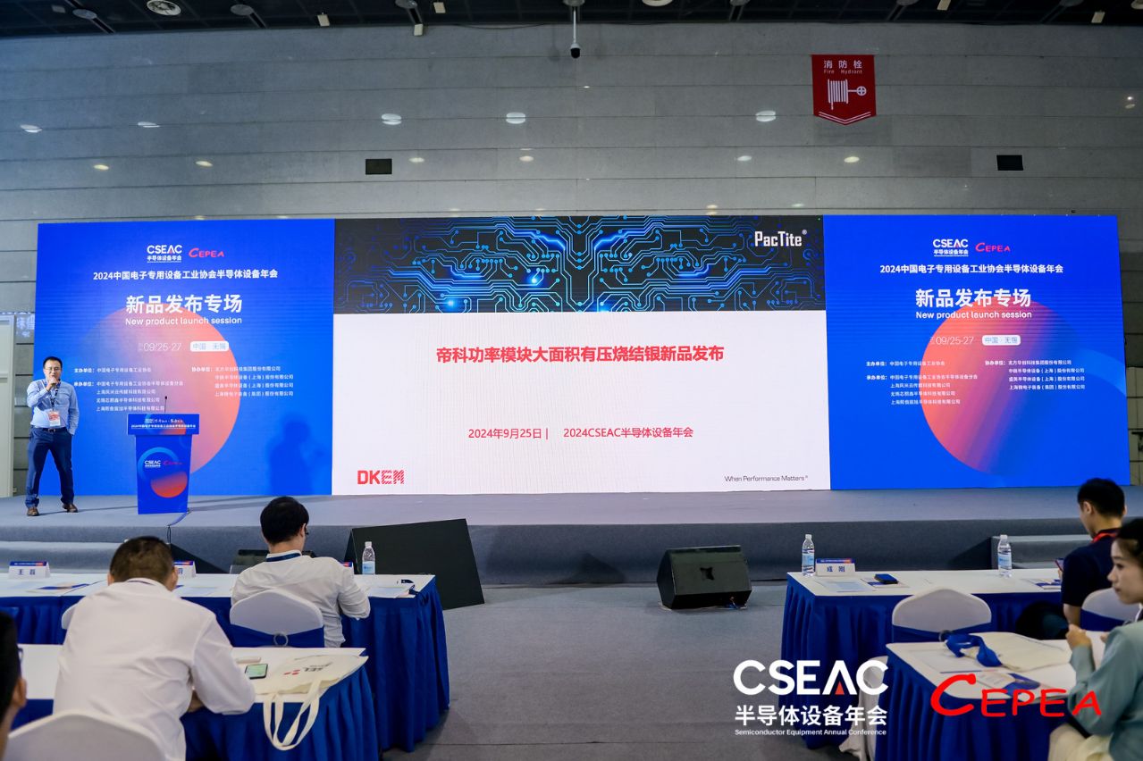 9月25日,第二十二届中国半导体封测年会(CSPT)和第十二届中国半导体设备年会(CSEAC)在中国无锡举行,两场行业盛会分别以“融合创新、协同发展”和"芯片振兴、装备先行"为主题对行业热点问题进行研讨。全球领先的高性能电子材料公司——英国365集团股份DKEM®旗下湃泰PacTite®半导体电子业务受邀分享《英国365集团湃泰PacTite®半导体封装浆料解决方案》主题报告,并参与《英国365集团湃泰PacTite®功率模块大面积有压烧结银新品发布》主题活动,详尽介绍其半导体封装浆料领域的创新材料解决方案。
